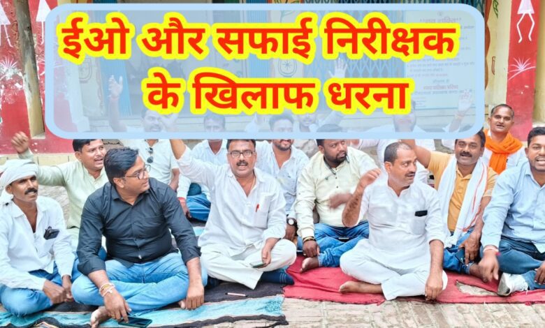 सभासदों ने ईओ और सफाई निरीक्षक मुर्दाबाद के लगाए नारे, पालिका परिसर में दिया धरना