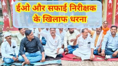 सभासदों ने ईओ और सफाई निरीक्षक मुर्दाबाद के लगाए नारे, पालिका परिसर में दिया धरना