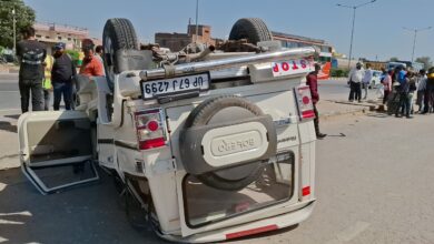 ट्रक से ओवरटेक के चक्कर में पलटी बोलेरो, बाइक को भी मारी टक्कर